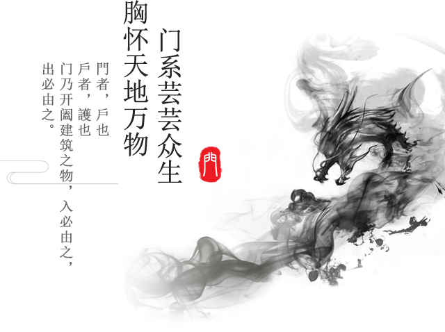 古人云:“宅以门户为冠带”。“门当户对、门庭若市、门第之见、利于跳龙门,说的都是关于门的俗语和传说,演绎出五彩斑斓的民俗文化,门不但是身份的象征,亦是身心寄托之所。开门、美好江山尽收眼底,闭门,喧嚣烦恼至于身后,尽显家的温馨幸福。