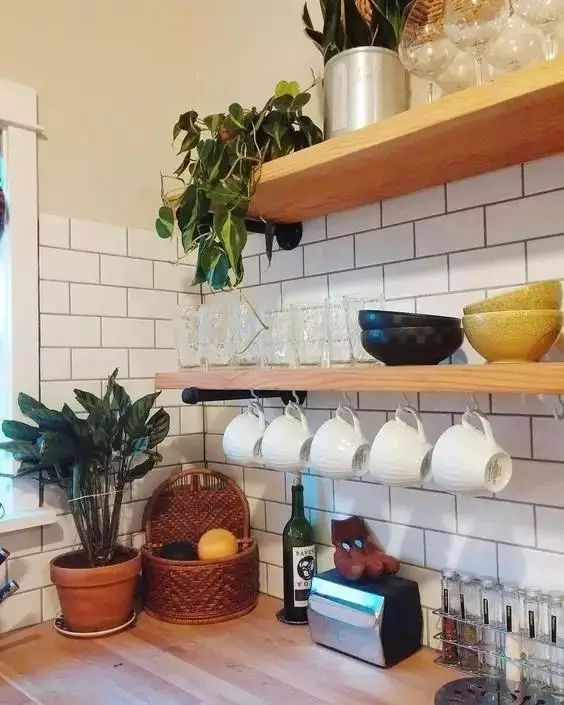 9.工作区的墙面也可以充分的利用,安装一些开放式的储物架就能很好的解决工作区小的烦恼,小物件放置在上面也更利用随时的取用。