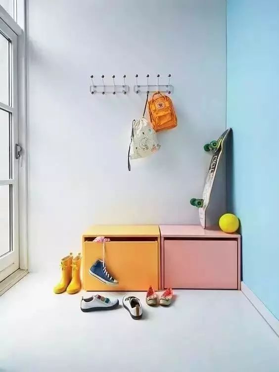 6.墙面太寡淡了不好看,花一些小心思,墙面收纳盒的独特运用让墙面丰富多彩。