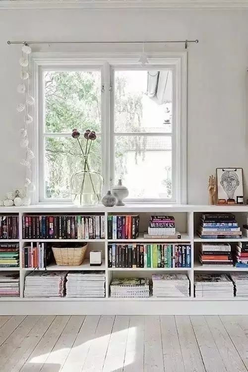 8.将靠窗的墙体打造成书柜,如果再将窗户设计成飘窗,岂不是一个完美的阅读空间加收纳空间。