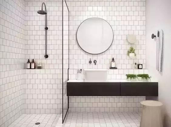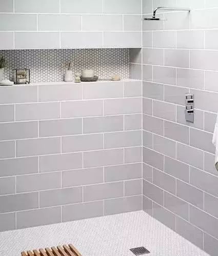 15.浴室也弄嵌入式壁龛,反正在一面墙上做文章,墙面砖块的对比处理,更时尚美观。